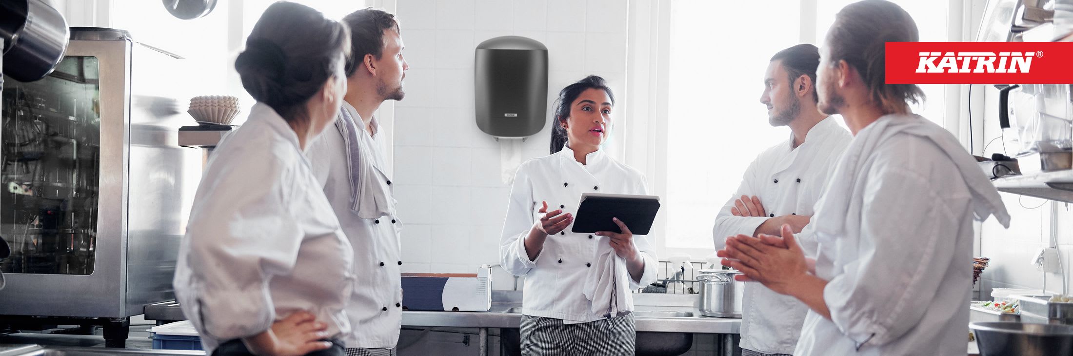 • Katrin dispenser hvit plast for alle Katrin håndtørk. Spesielt tilpasset rom/område med liten plass